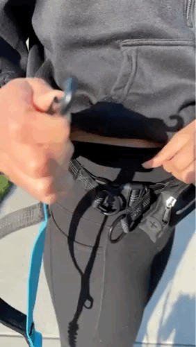 2. Attach the Leash – Clip your dog’s leash to the durable D-ring on the belt.